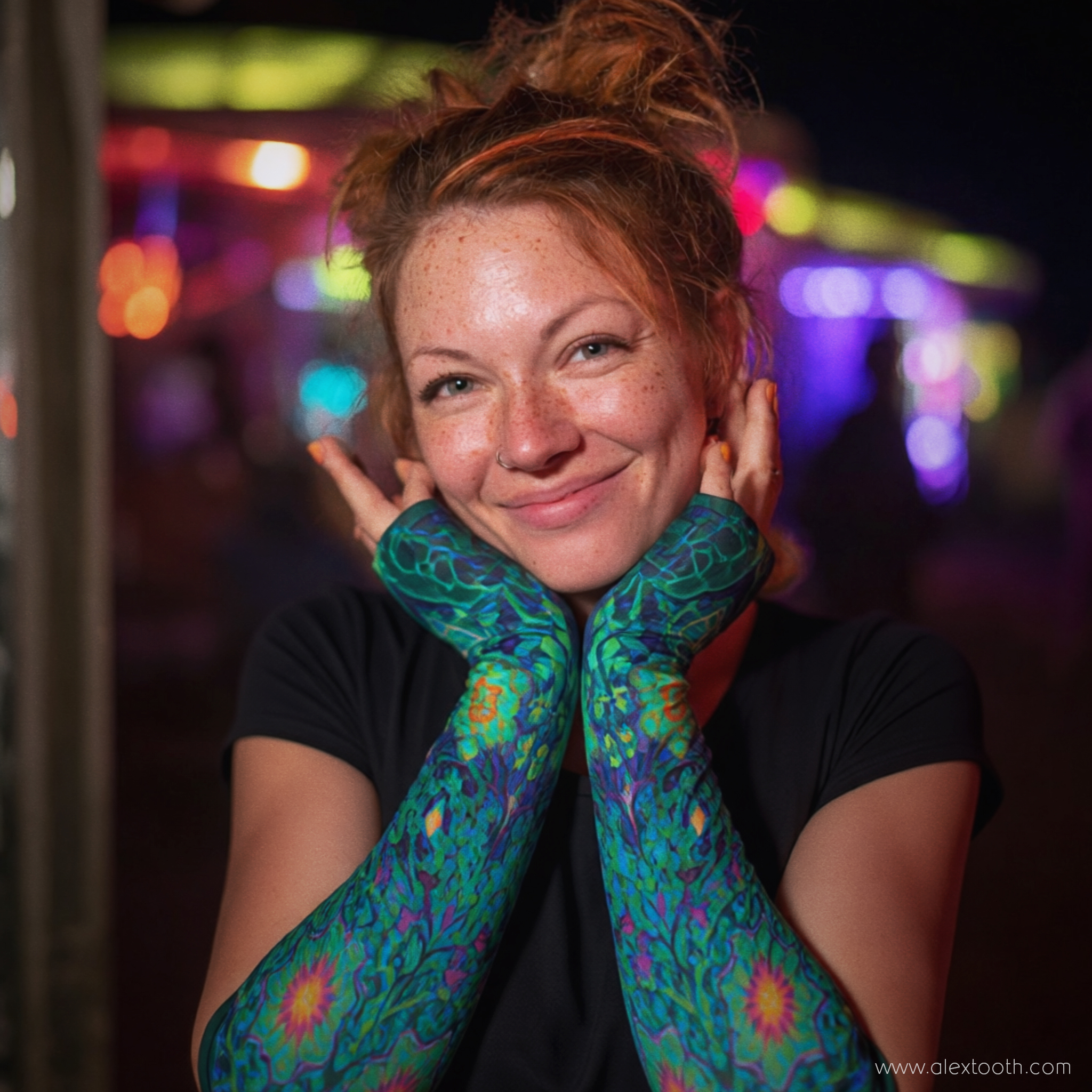 ✨ “Emerald StarGate” AuraSleeve Gloves featuring original Alex Tooth artwork.