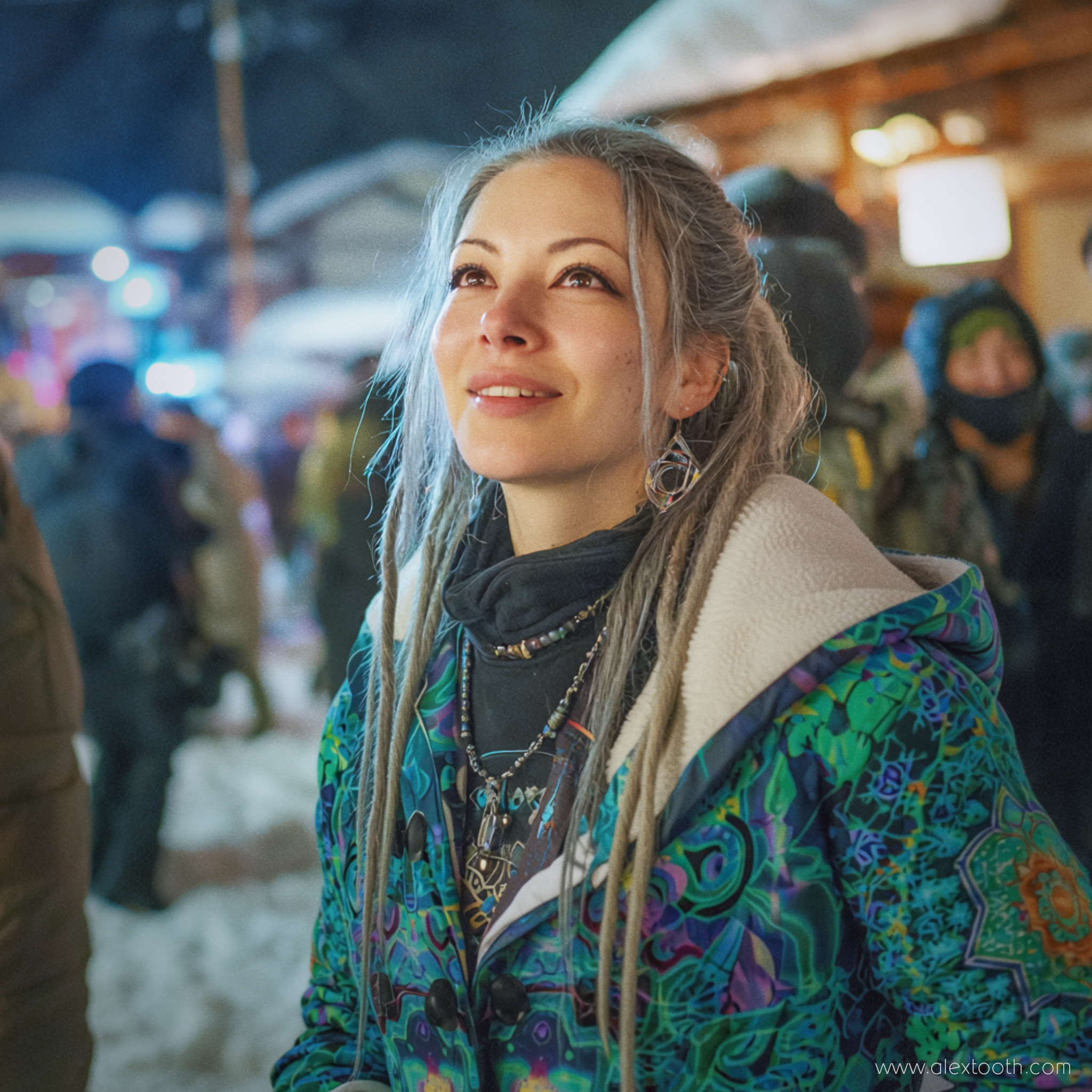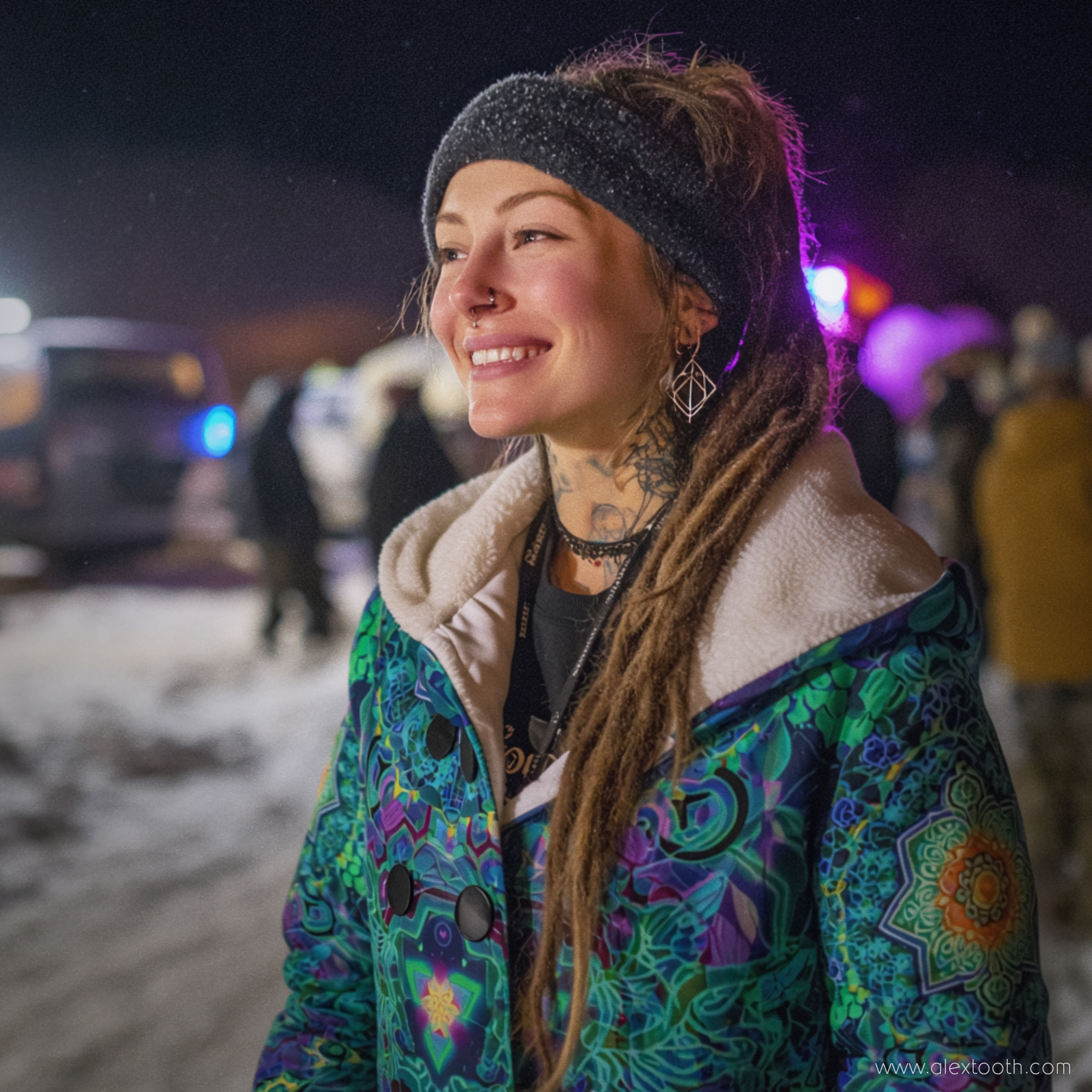 This coat is designed for women and cut to flatter the form without feeling restrictive. It layers easily over winter outfits and is ideal for cold trips, festivals in winter conditions, evening walks, travel, and everyday wear when you want warmth without disappearing into neutral outerwear.