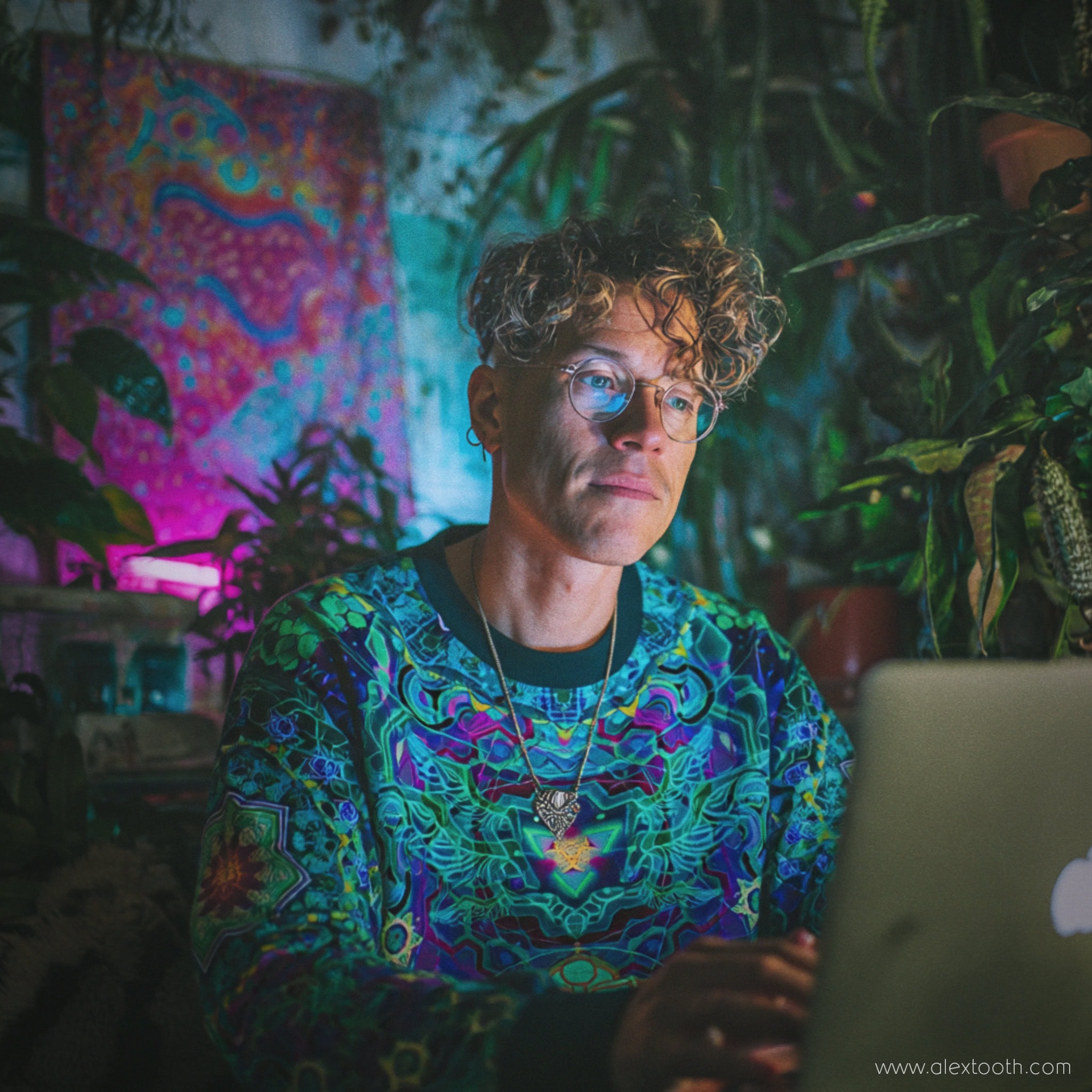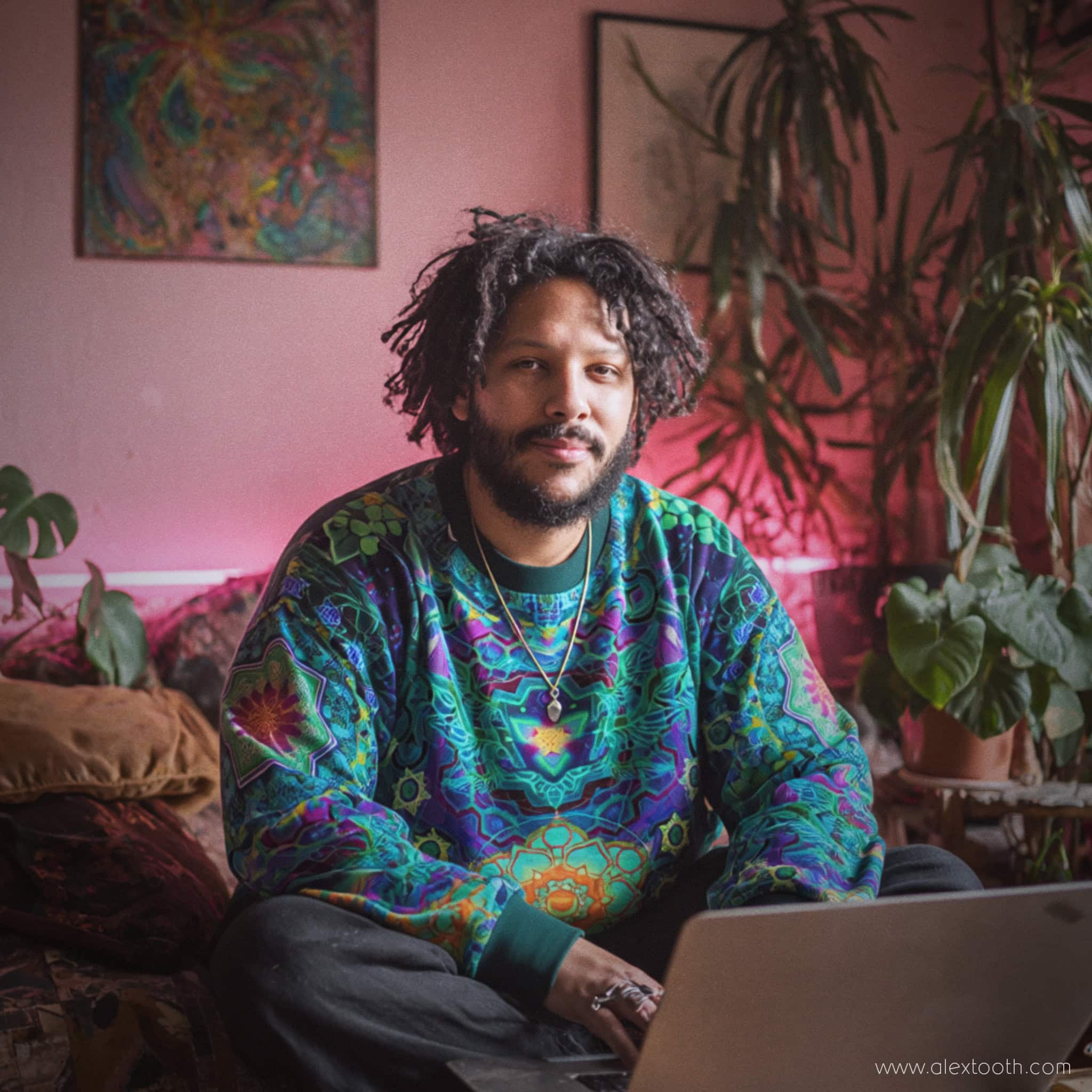 ✨ “Emerald StarGate” Stillpoint Sweatshirt featuring original Alex Tooth artwork.