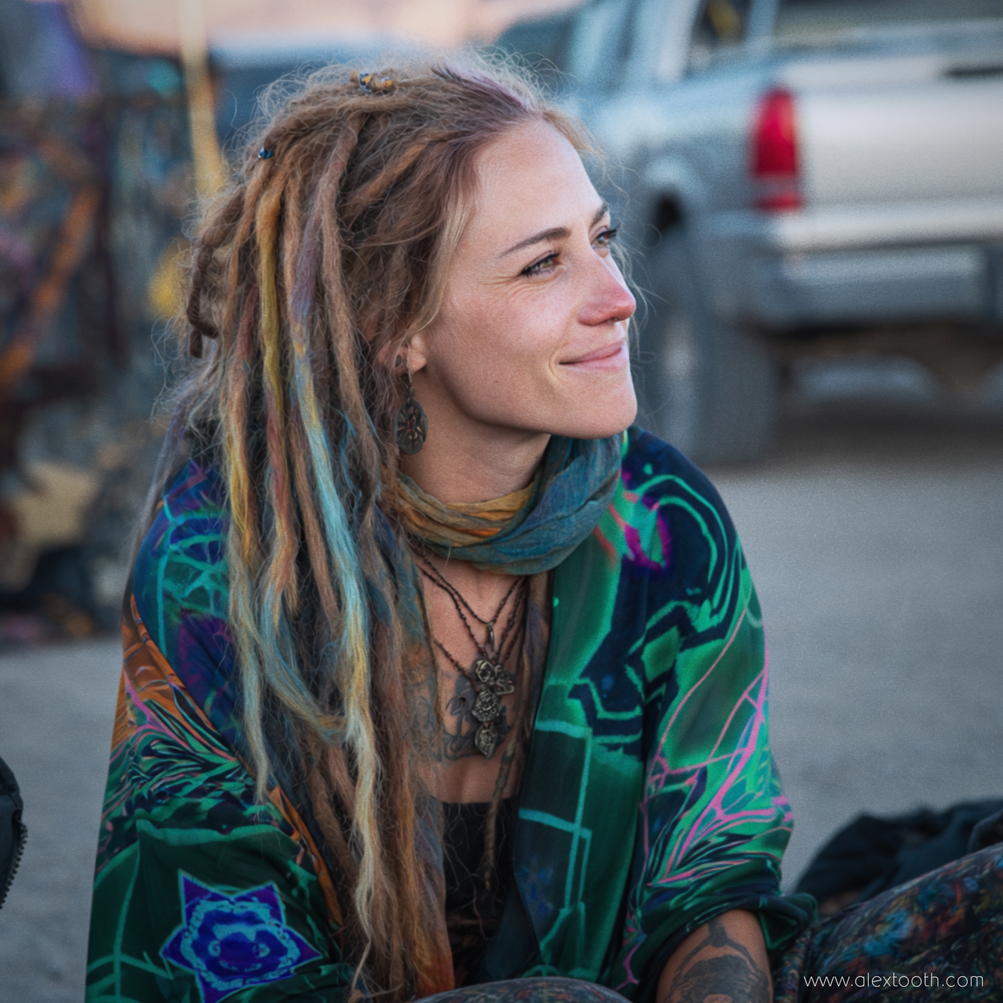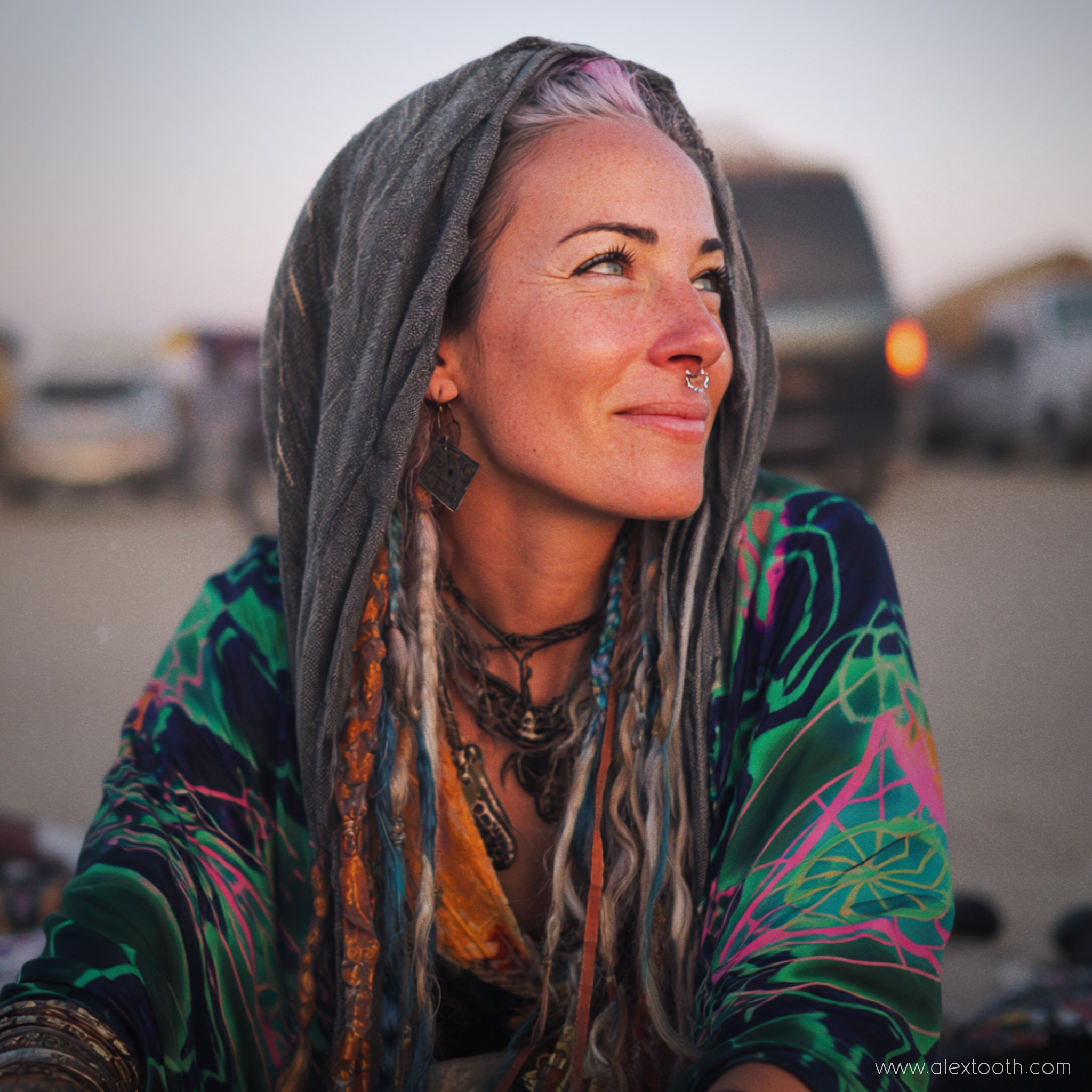✨ “Emerald StarGate” Waylight Scarf featuring original Alex Tooth artwork.