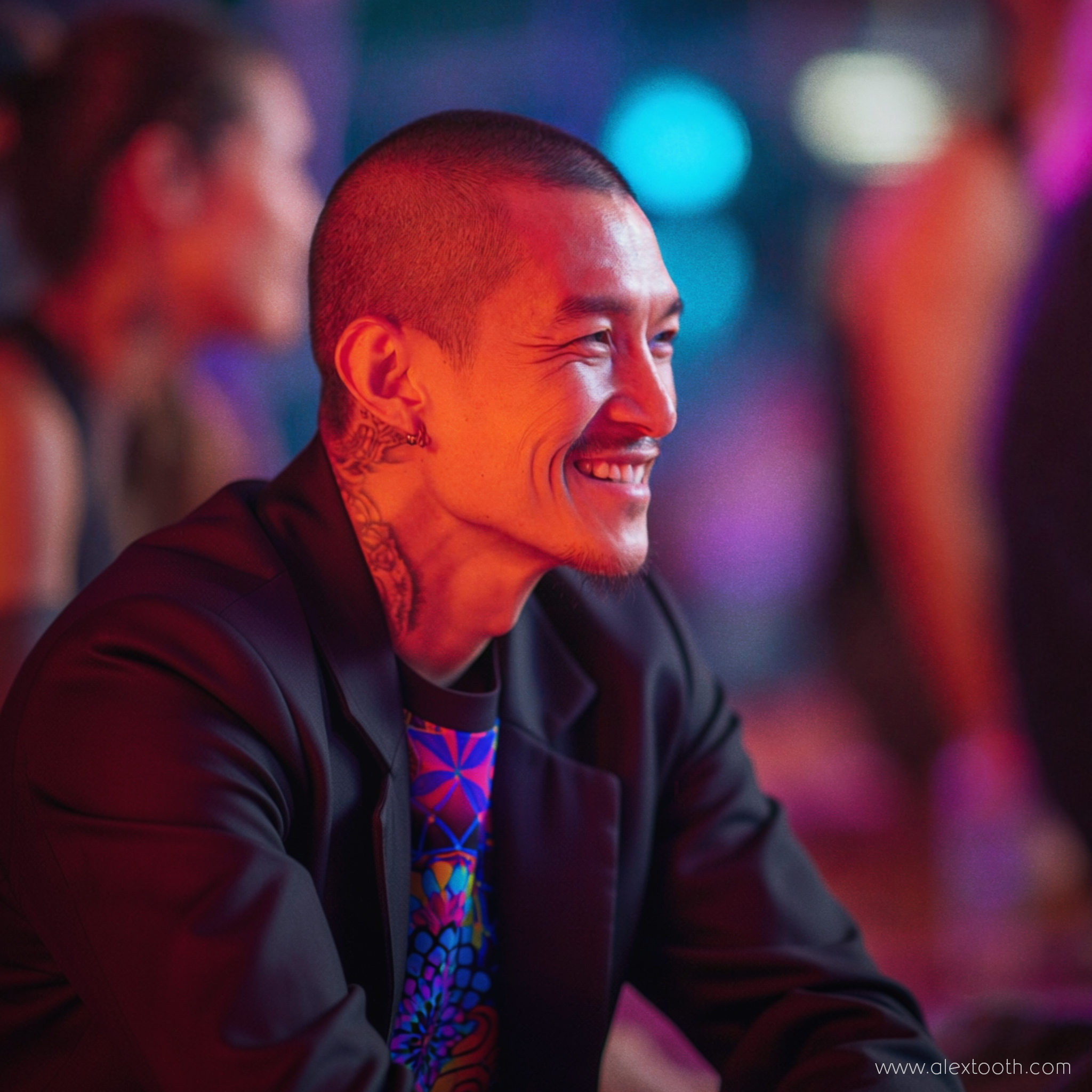 Under certain lighting, elements of neon clothing and fluorescent clothing begin to appear differently, interacting with the artwork in a way that isn’t obvious at first glance.