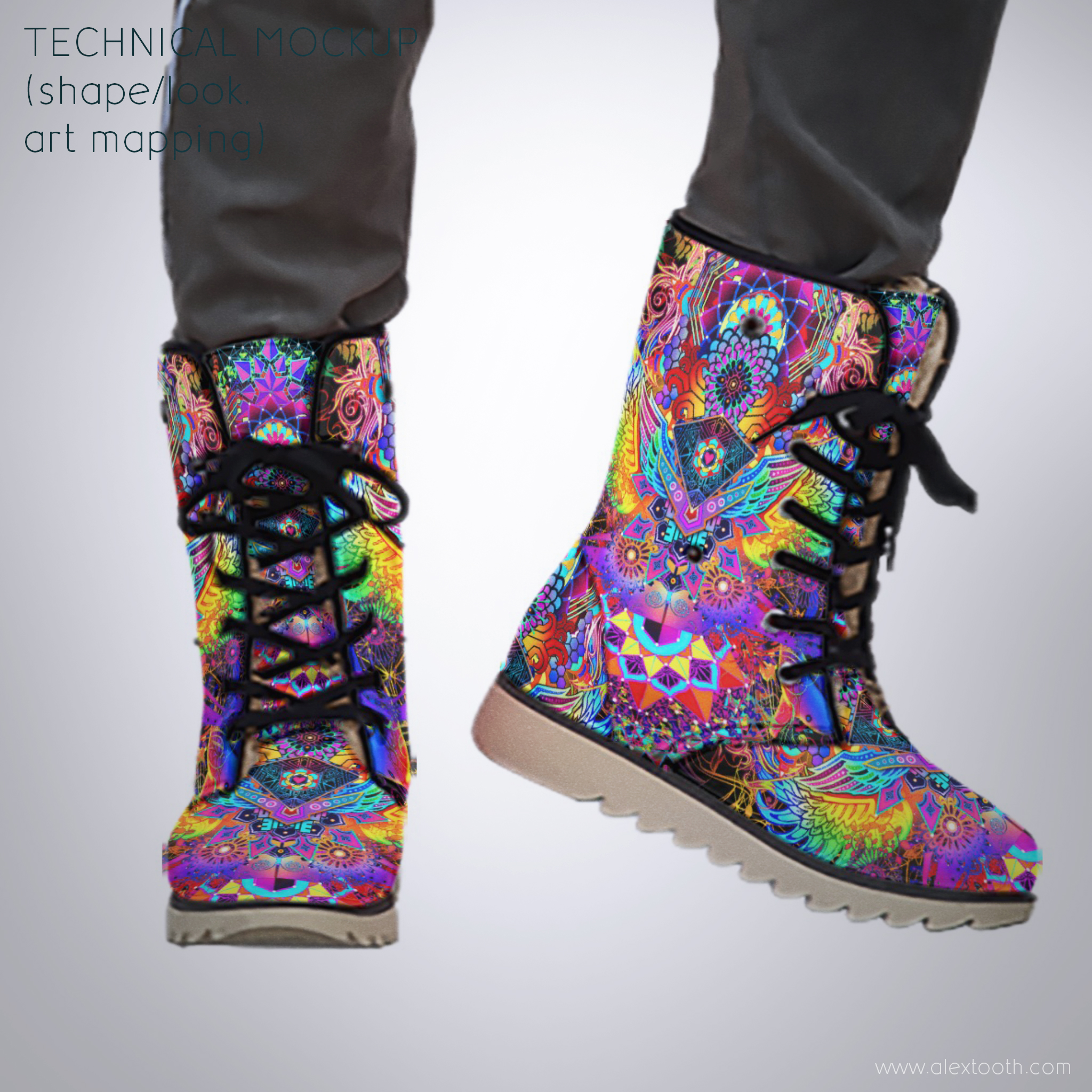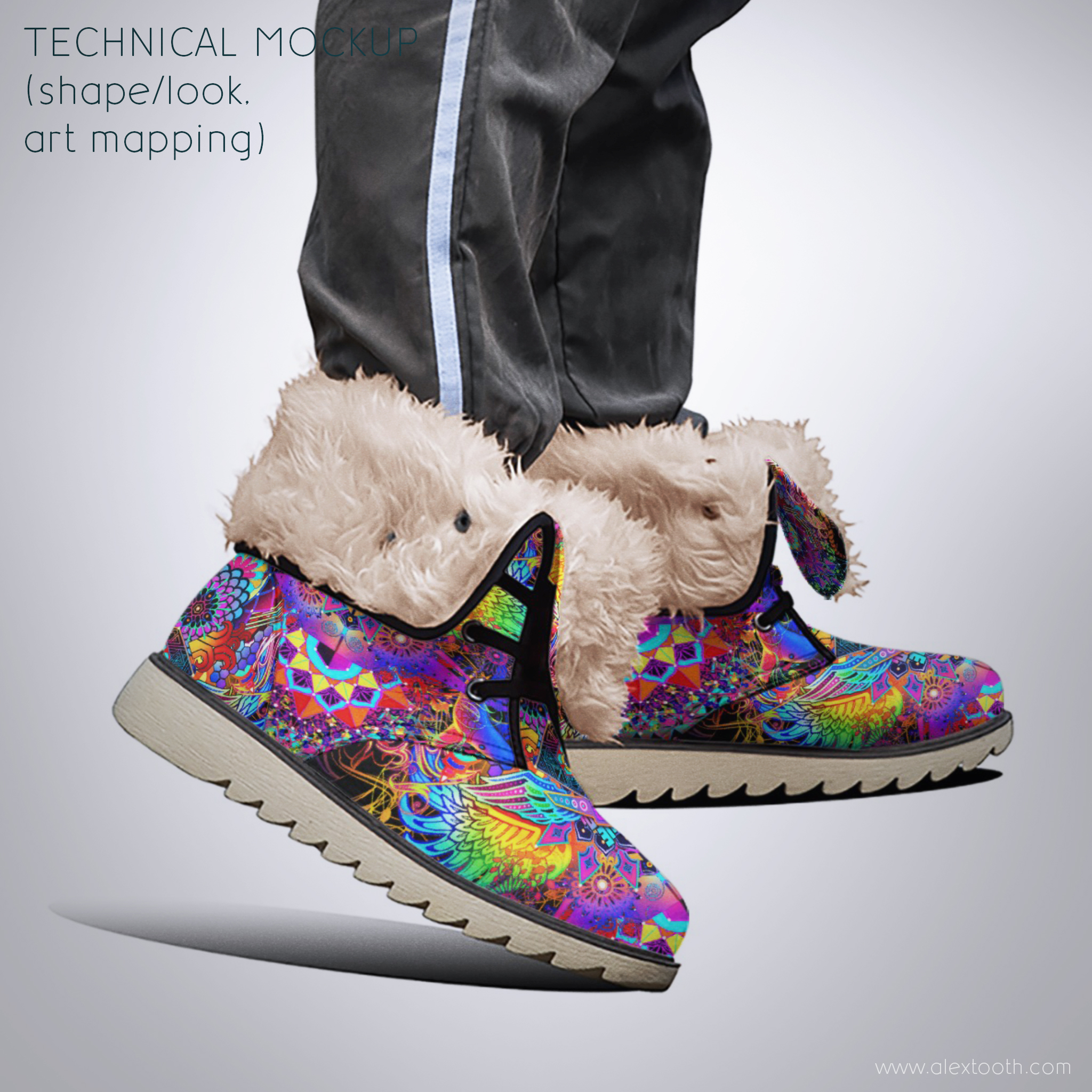 Built as a winter-ready companion, Driftwalker Boots combine sturdy construction with a snug, fleecy interior. They’re made to feel grounded and protective without losing the expressive, visionary edge that defines Alex Tooth wearable art. These boots are practical enough for daily winter wear, yet bold enough to stand out in snow, rain, neon-lit nights, and unfamiliar terrain.