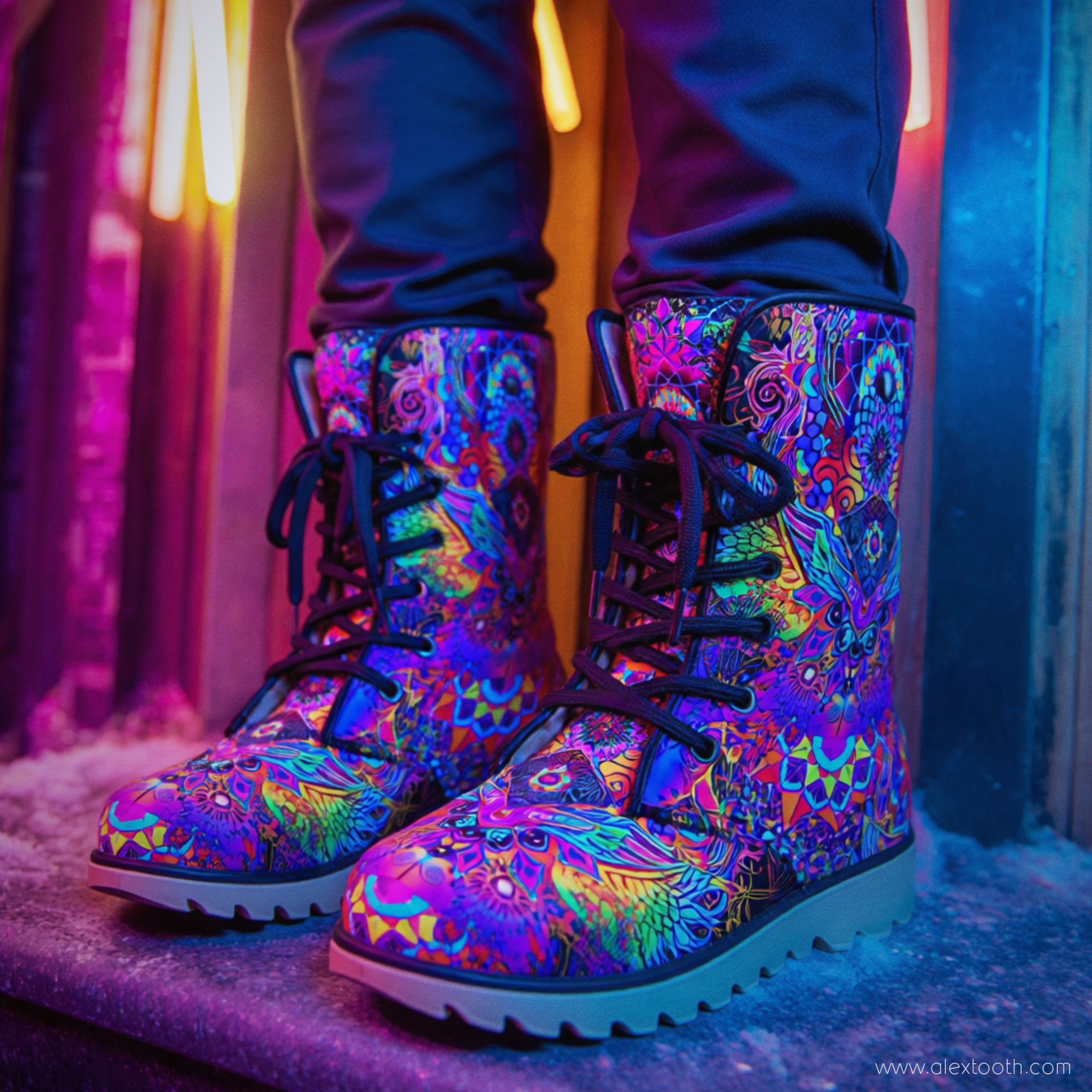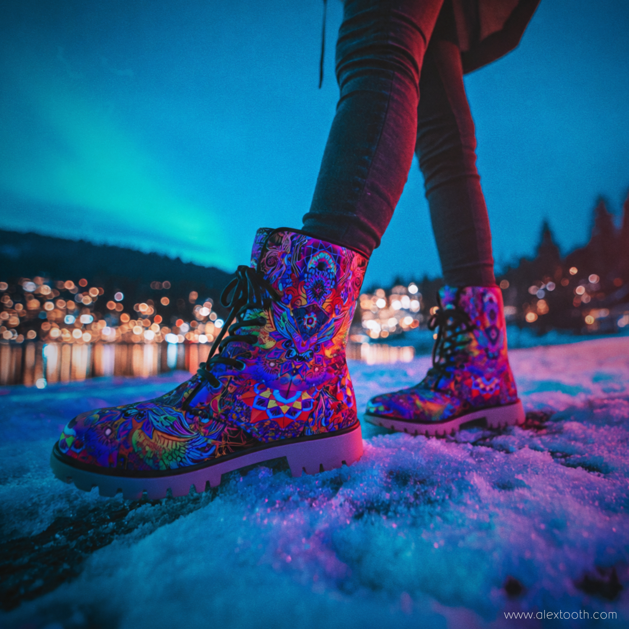 Built as a winter-ready companion, Driftwalker Boots combine sturdy construction with a snug, fleecy interior. They’re made to feel grounded and protective without losing the expressive, visionary edge that defines Alex Tooth wearable art. These boots are practical enough for daily winter wear, yet bold enough to stand out in snow, rain, neon-lit nights, and unfamiliar terrain.