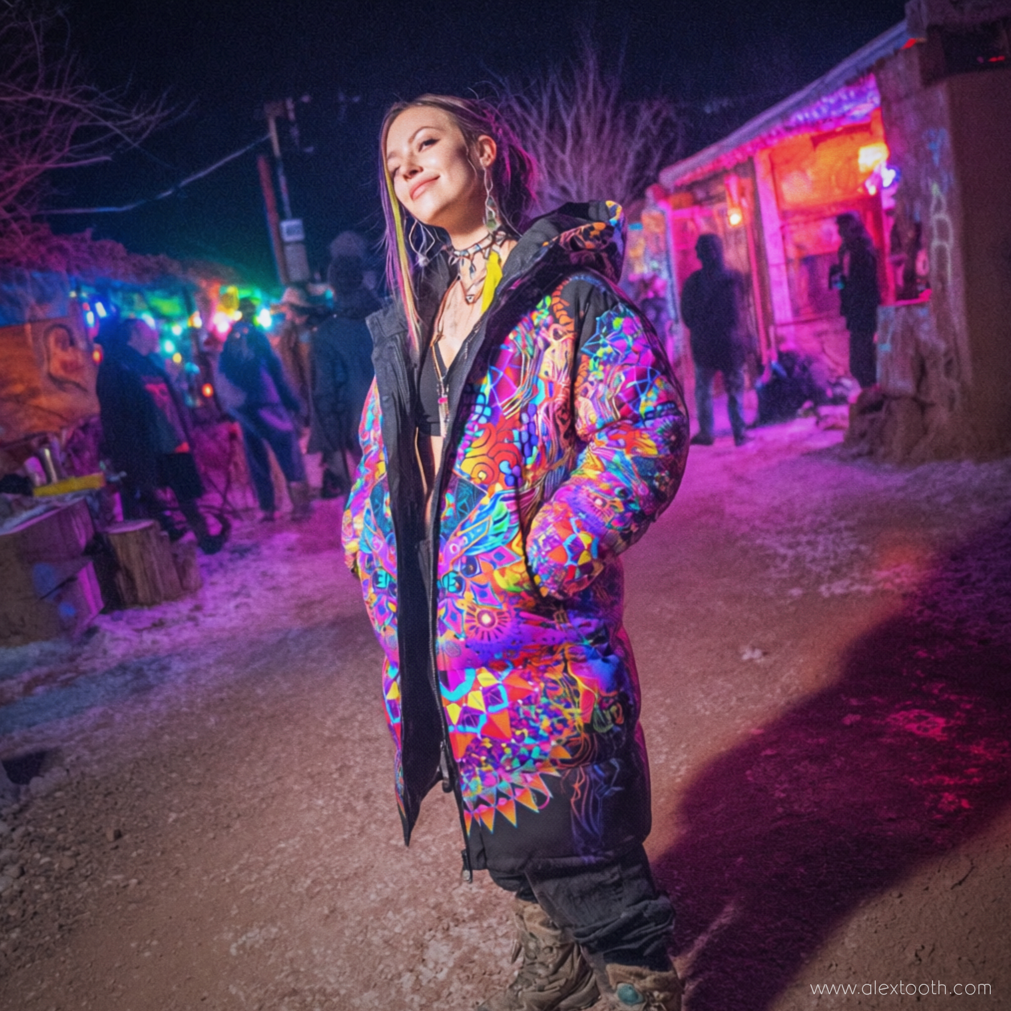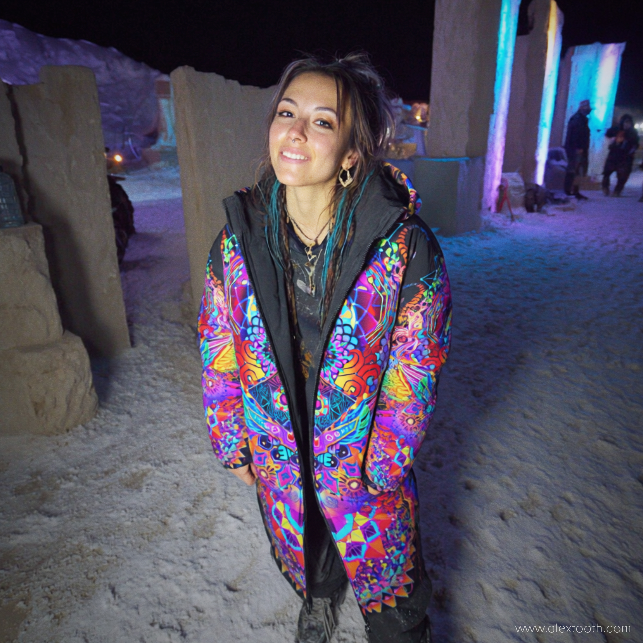 This is a gender-neutral garment, intended for those drawn to expressive art, long silhouettes, and clothing that feels purposeful rather than trend-led — equally at home in cold desert gatherings, mountain terrain, winter streets, or slow travel through unfamiliar places.