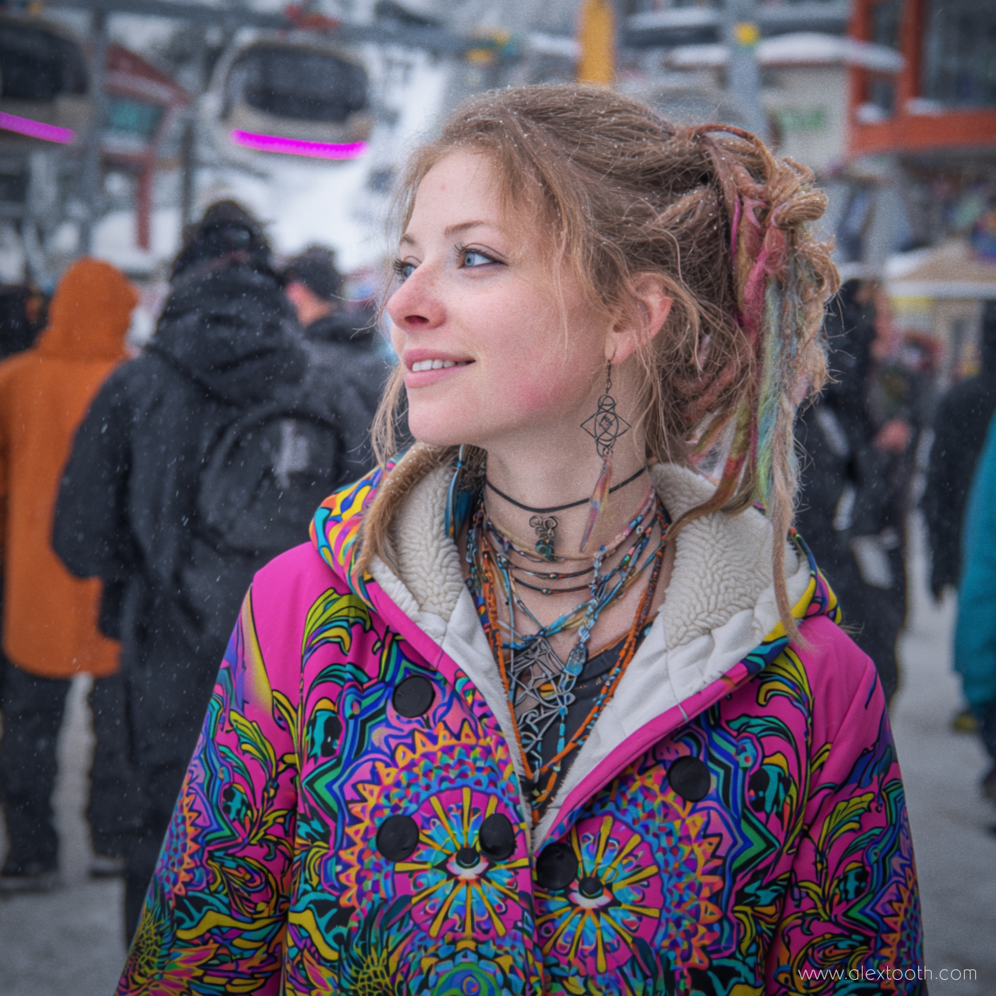 This coat is designed for women and cut to flatter the form without feeling restrictive. It layers easily over winter outfits and is ideal for cold trips, festivals in winter conditions, evening walks, travel, and everyday wear when you want warmth without disappearing into neutral outerwear.