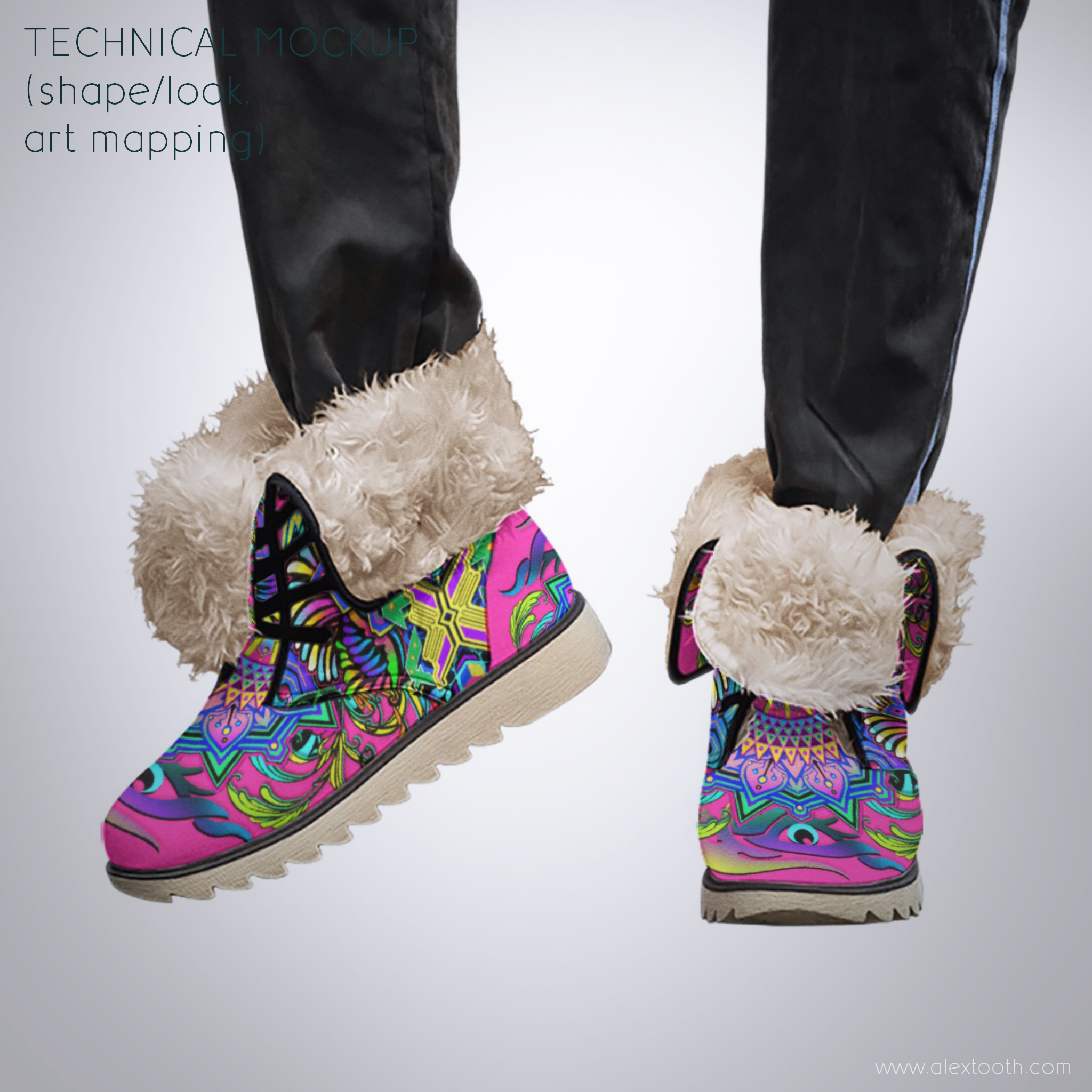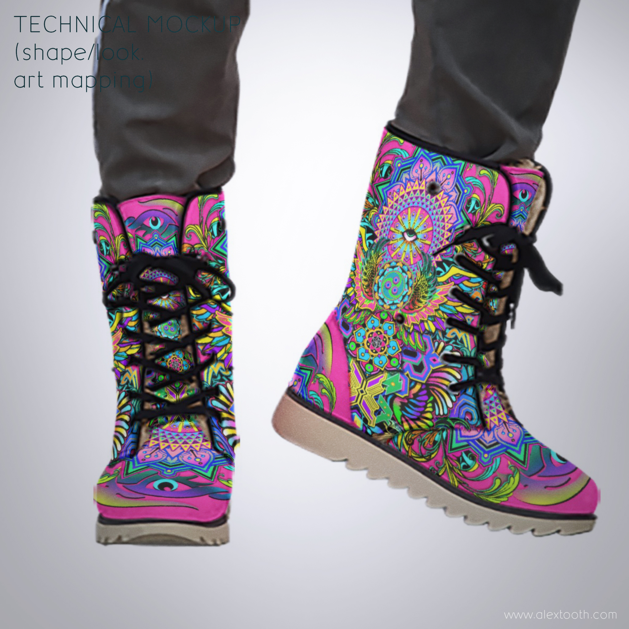 Built as a winter-ready companion, Driftwalker Boots combine sturdy construction with a snug, fleecy interior. They’re made to feel grounded and protective without losing the expressive, visionary edge that defines Alex Tooth wearable art. These boots are practical enough for daily winter wear, yet bold enough to stand out in snow, rain, neon-lit nights, and unfamiliar terrain.