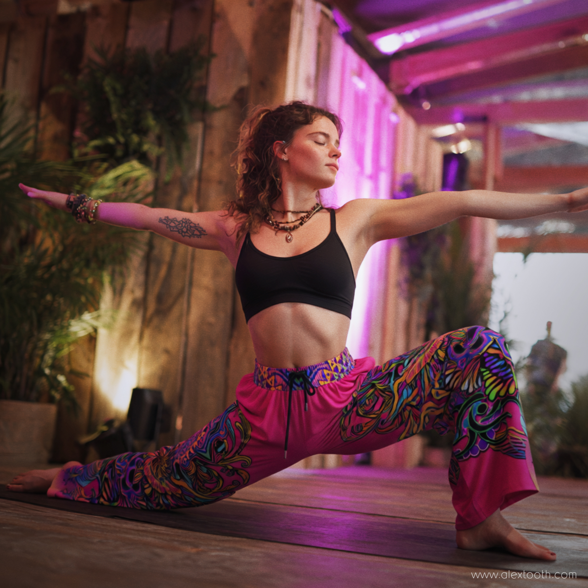✨ “Radiant Bloom” FlowState Pants featuring original Alex Tooth artwork.