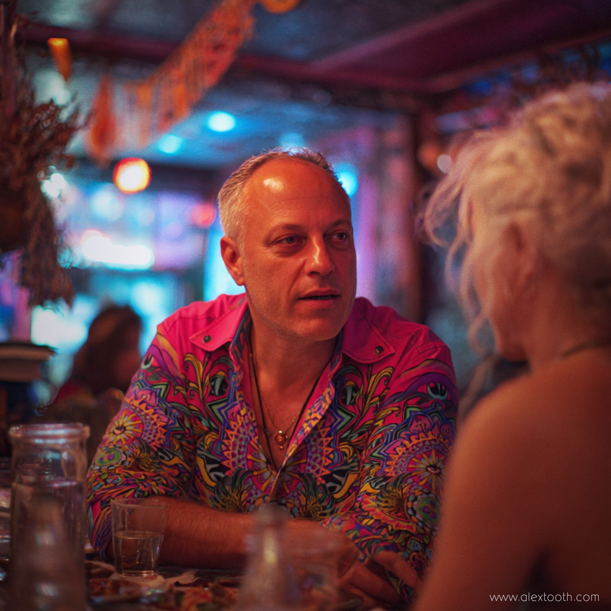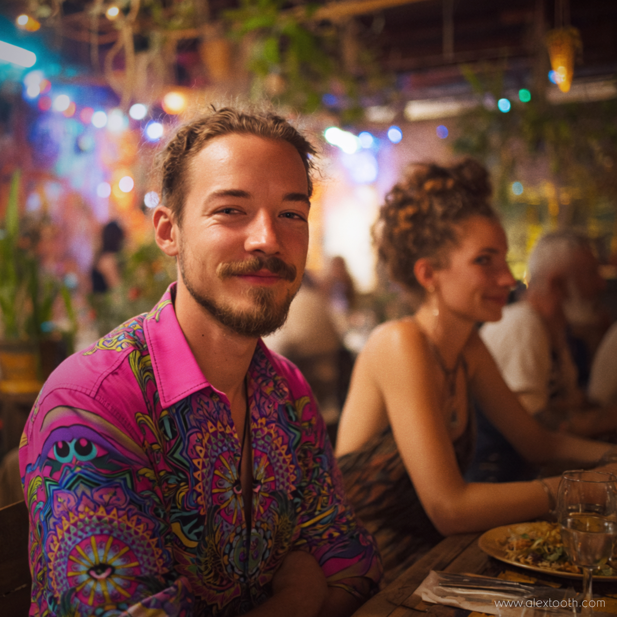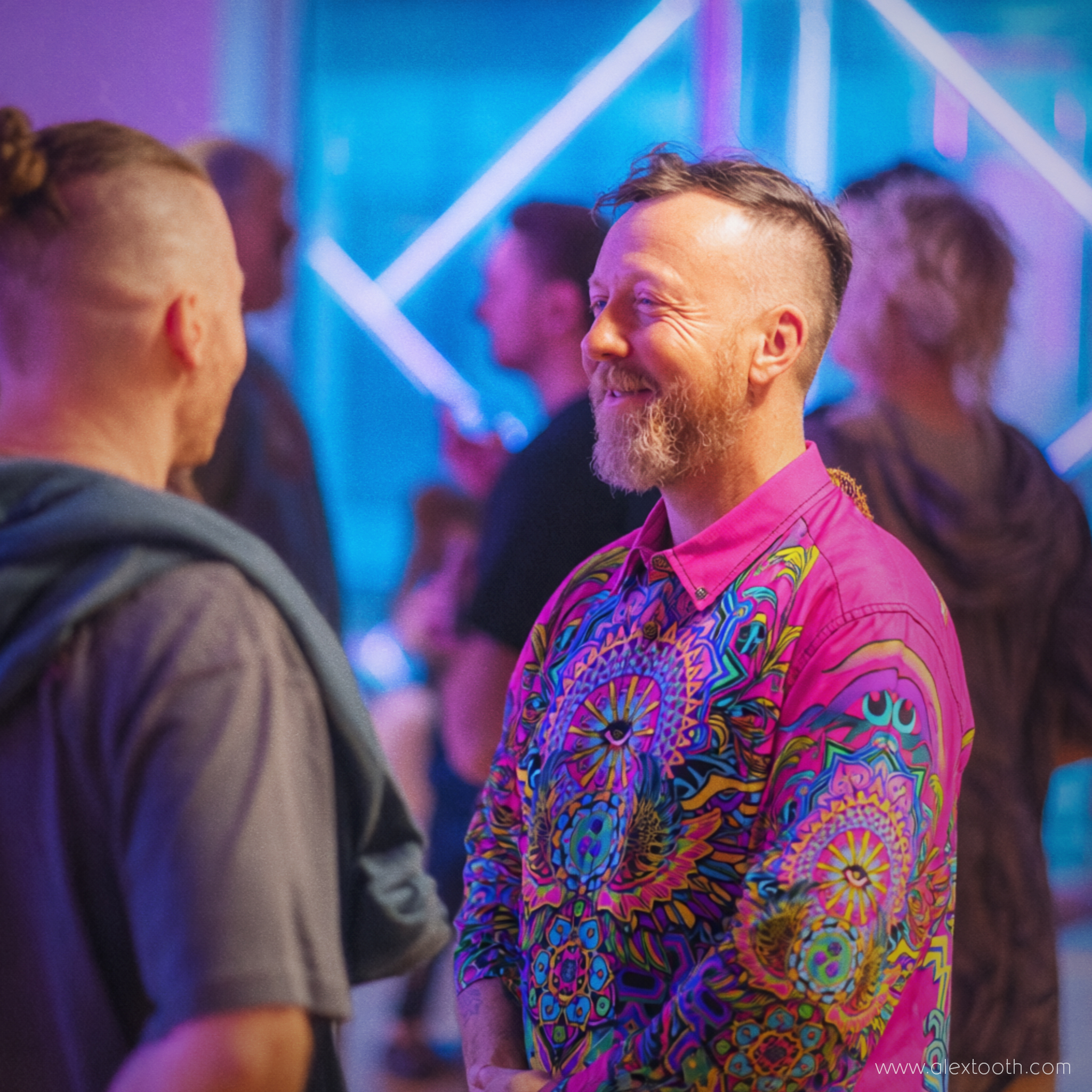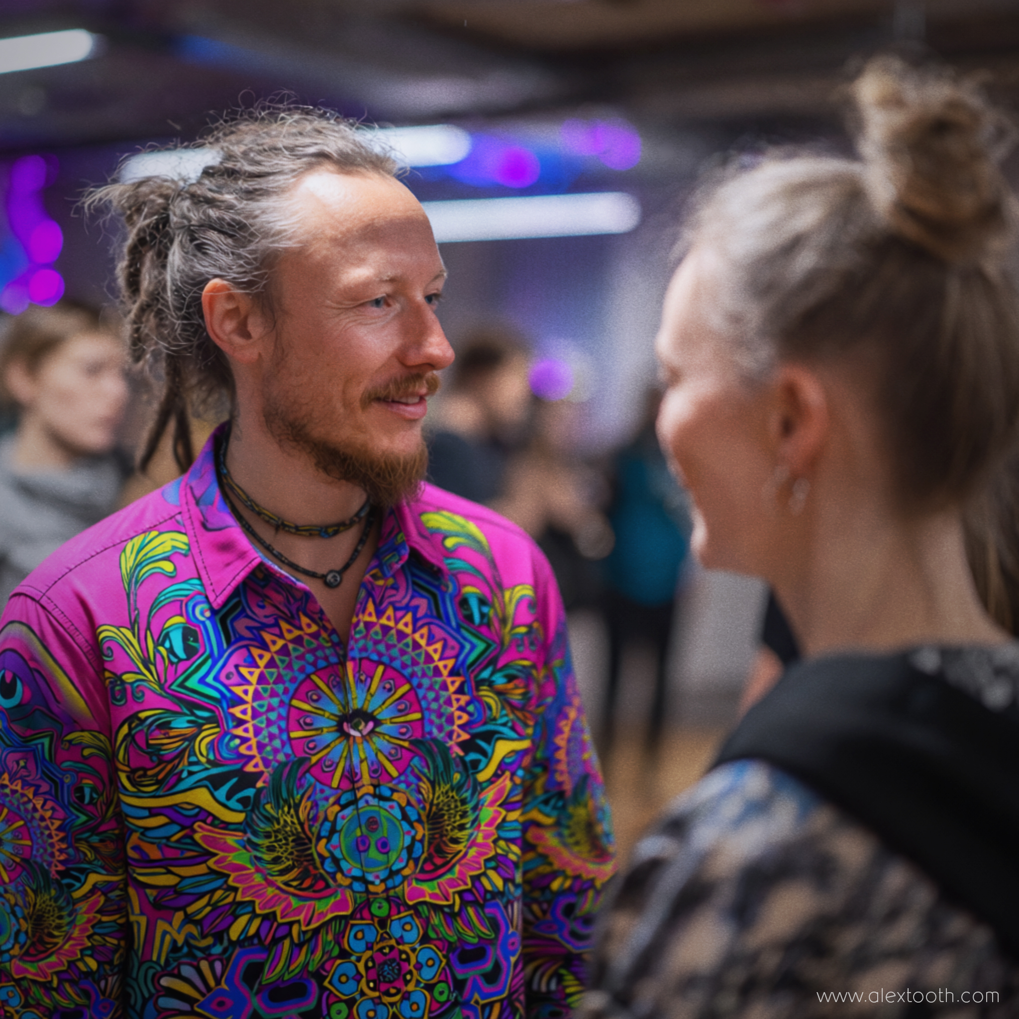 ✨ Mens button up shirt featuring original Alex Tooth artwork, designed for relaxed social settings where expression matters — without the noise, costume, or performative edge.