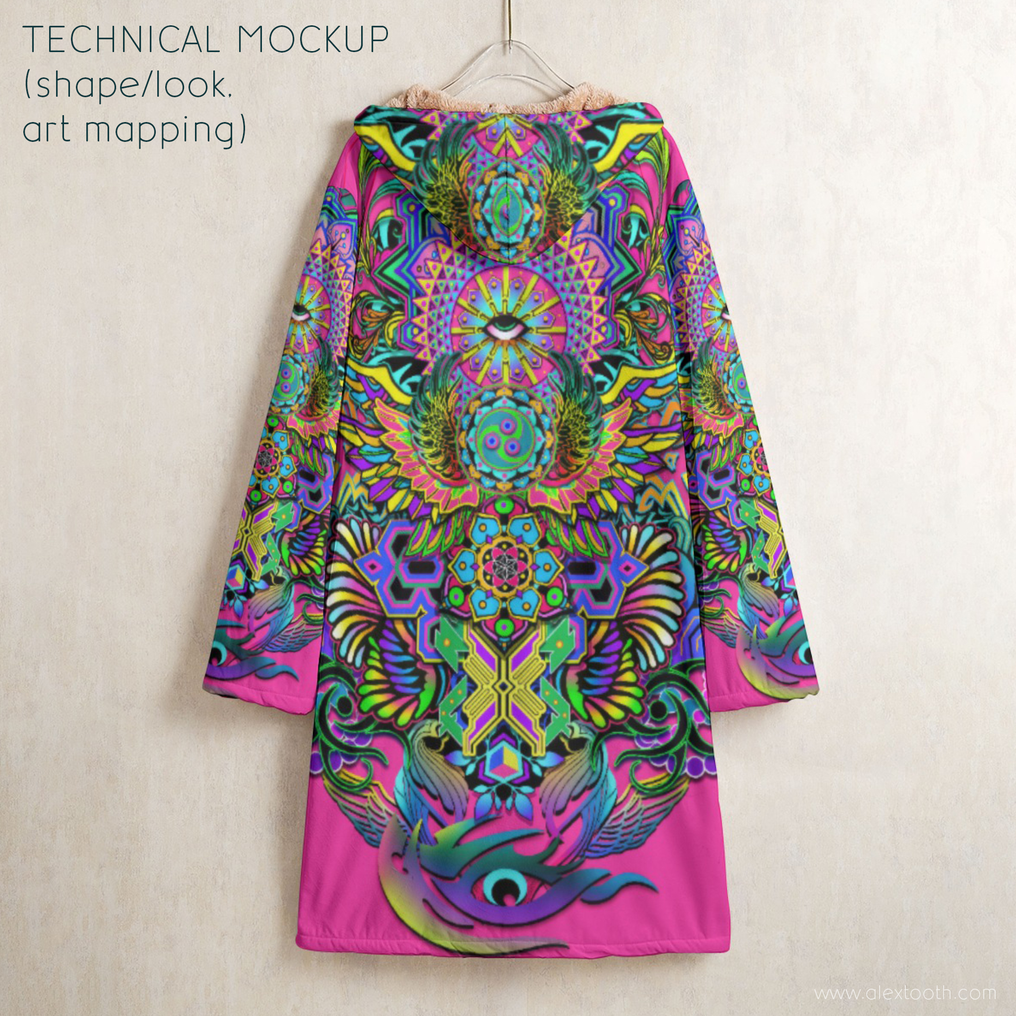 ✨ “Radiant Bloom” Vision Robe featuring original Alex Tooth artwork. This hooded robe is designed as a versatile outer layer — comfortable at home, distinctive on the high street, and striking at festivals, markets, camps, and travel moments where warmth and presence both matter.