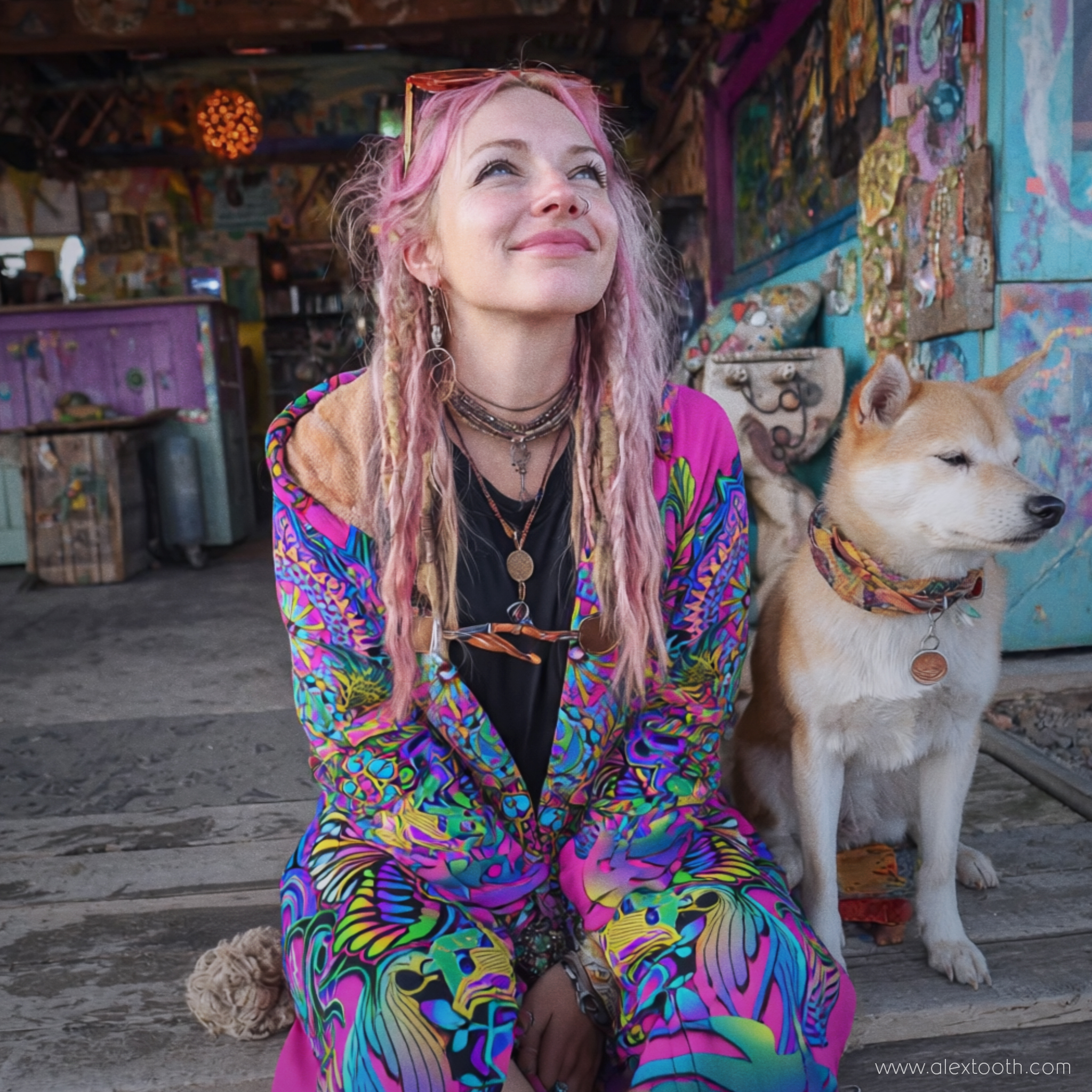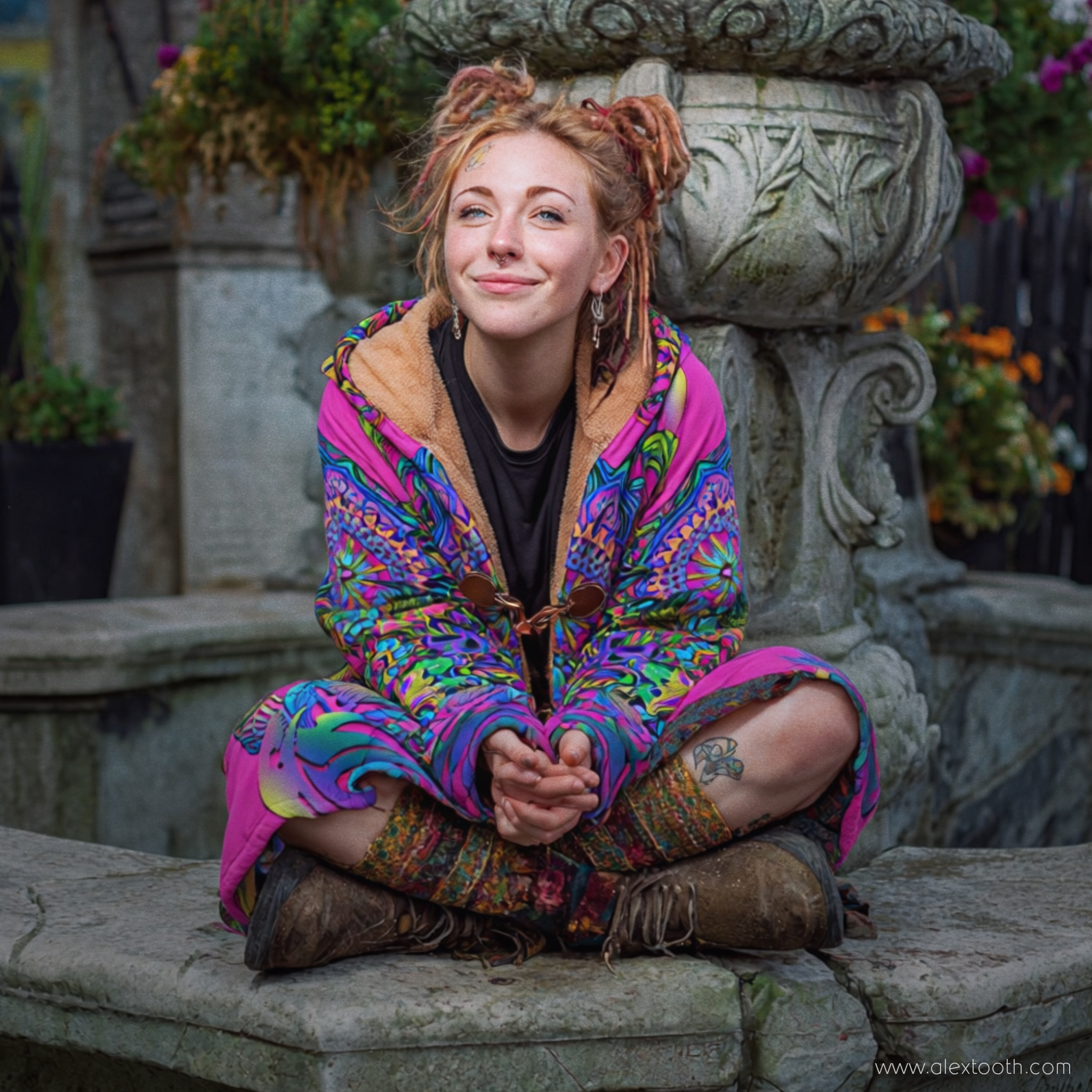 ✨ “Radiant Bloom” Vision Robe featuring original Alex Tooth artwork. This hooded robe is designed as a versatile outer layer — comfortable at home, distinctive on the high street, and striking at festivals, markets, camps, and travel moments where warmth and presence both matter.
